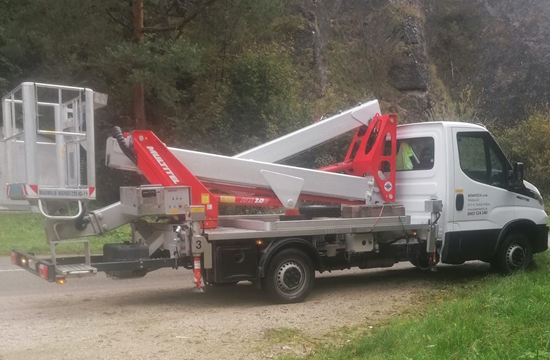 Ponúkame profesionálne práce vo výškach s plošinou MULTITEL na podvozku IVECO. S maximálnym dosahom až 20 metrov a celkovou hmotnosťou 3,5 tony je ideálna pre: